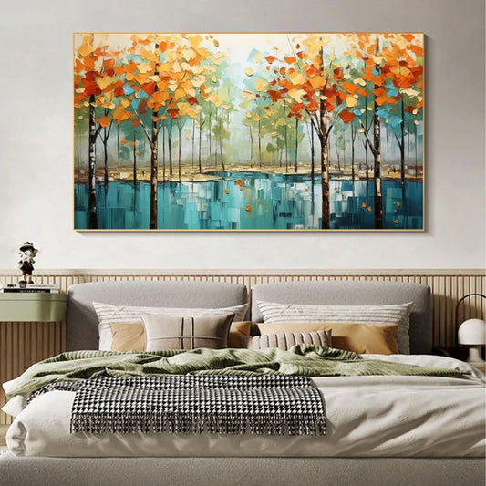 Autumn Glow Abstract Forest Oil Painting on Canvas