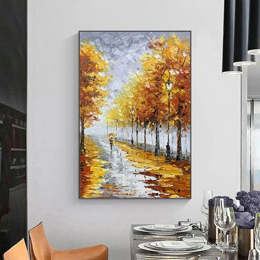 Autumn Glow Abstract Forest Oil Painting on Canvas