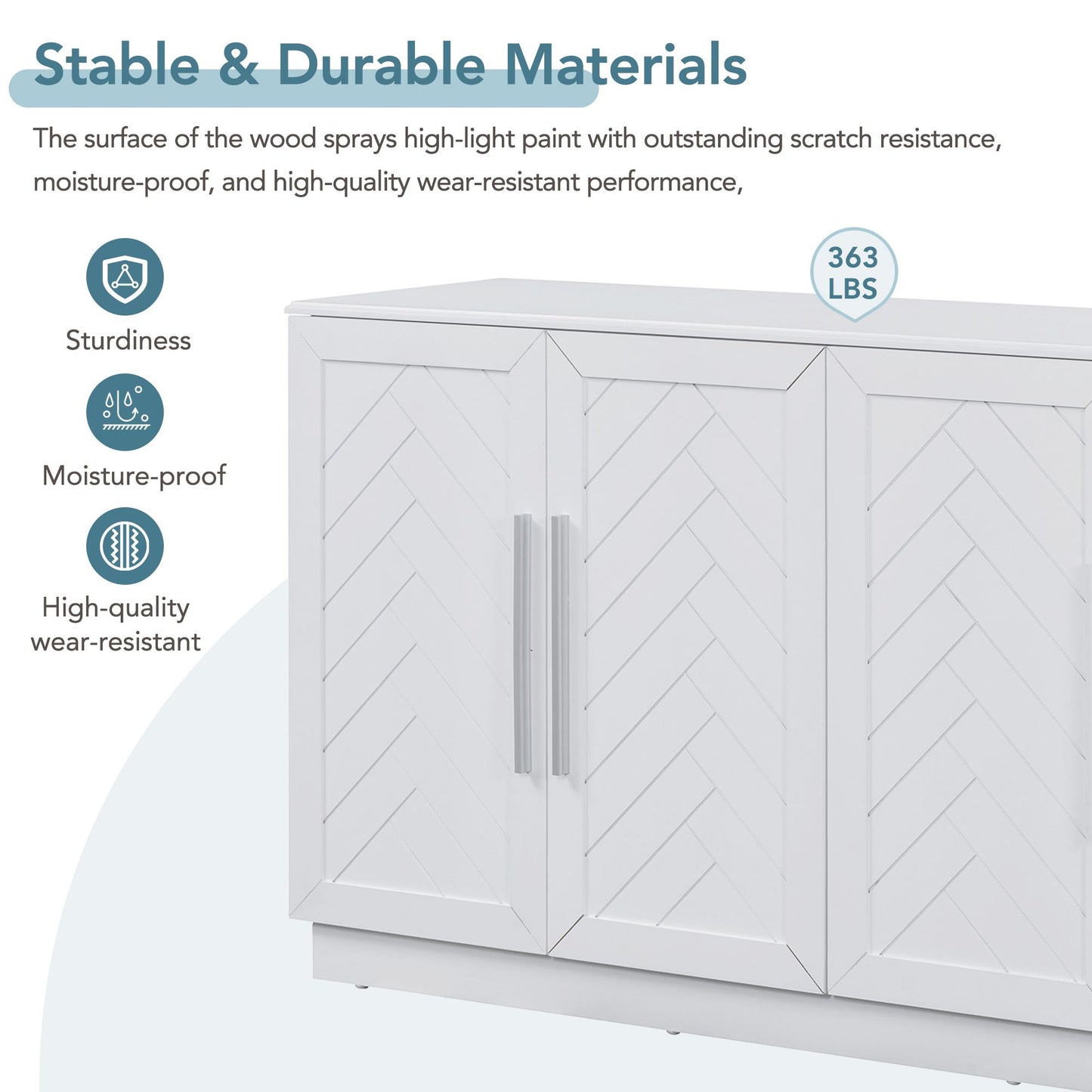Chevron Inlay Sideboard with Adjustable Shelves and Silver Handles in White