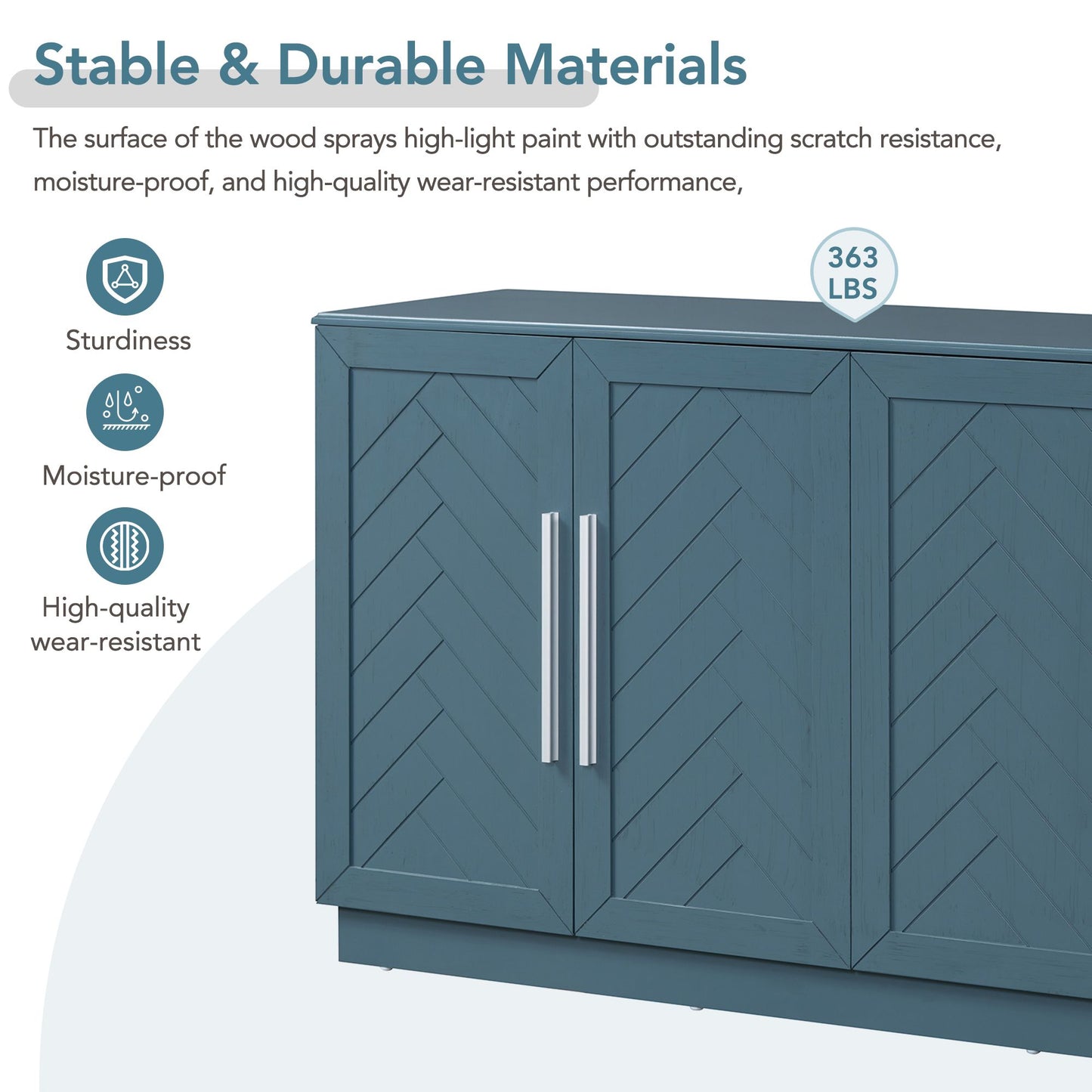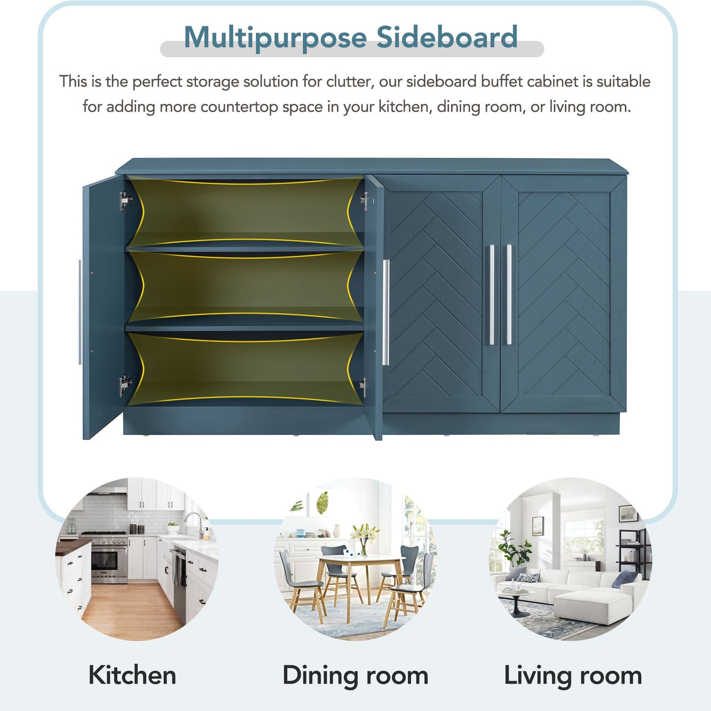 Three Color Options: Our sideboard comes in three different colors for users, namely antique blue, white, and black. The white and black cabinets match the silver handles naturally exude a sense of light luxury, and look bright and clean. The navy blue one matches the silver accessories showing gorgeous and high class, and that can bring a retro romantic feel to the house.