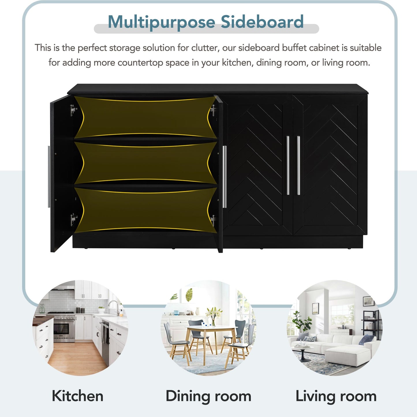 Multipurpose Sideboard: This is the perfect storage solution for clutter, and it will keep your living room and kitchen neat and orderly. Neat lines and unique striped design with cabinet combine aesthetics and practicality, which meets the aesthetic standards of every era. Our sideboard buffet cabinet is suitable for adding more countertop space in your kitchen, dining room, or living room.