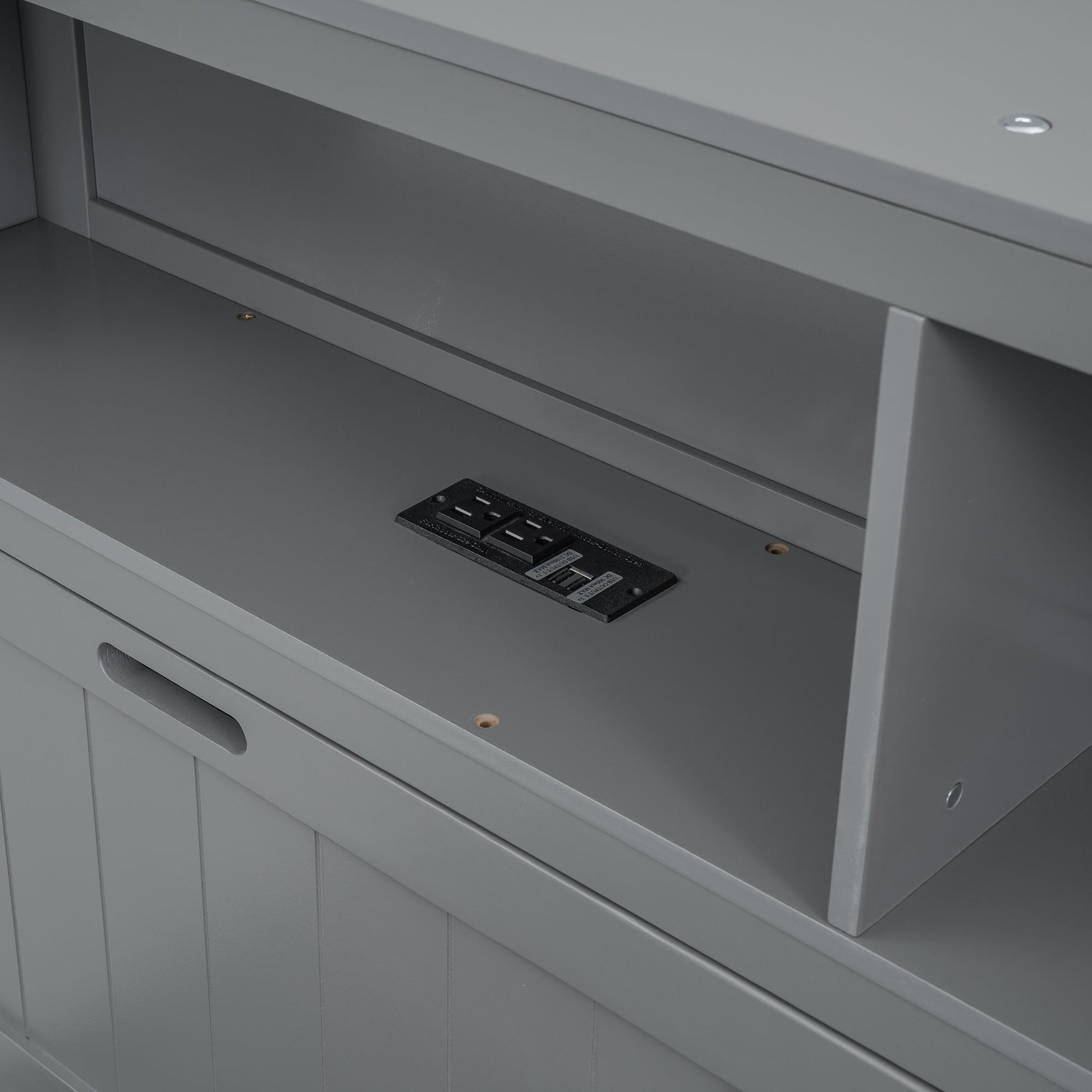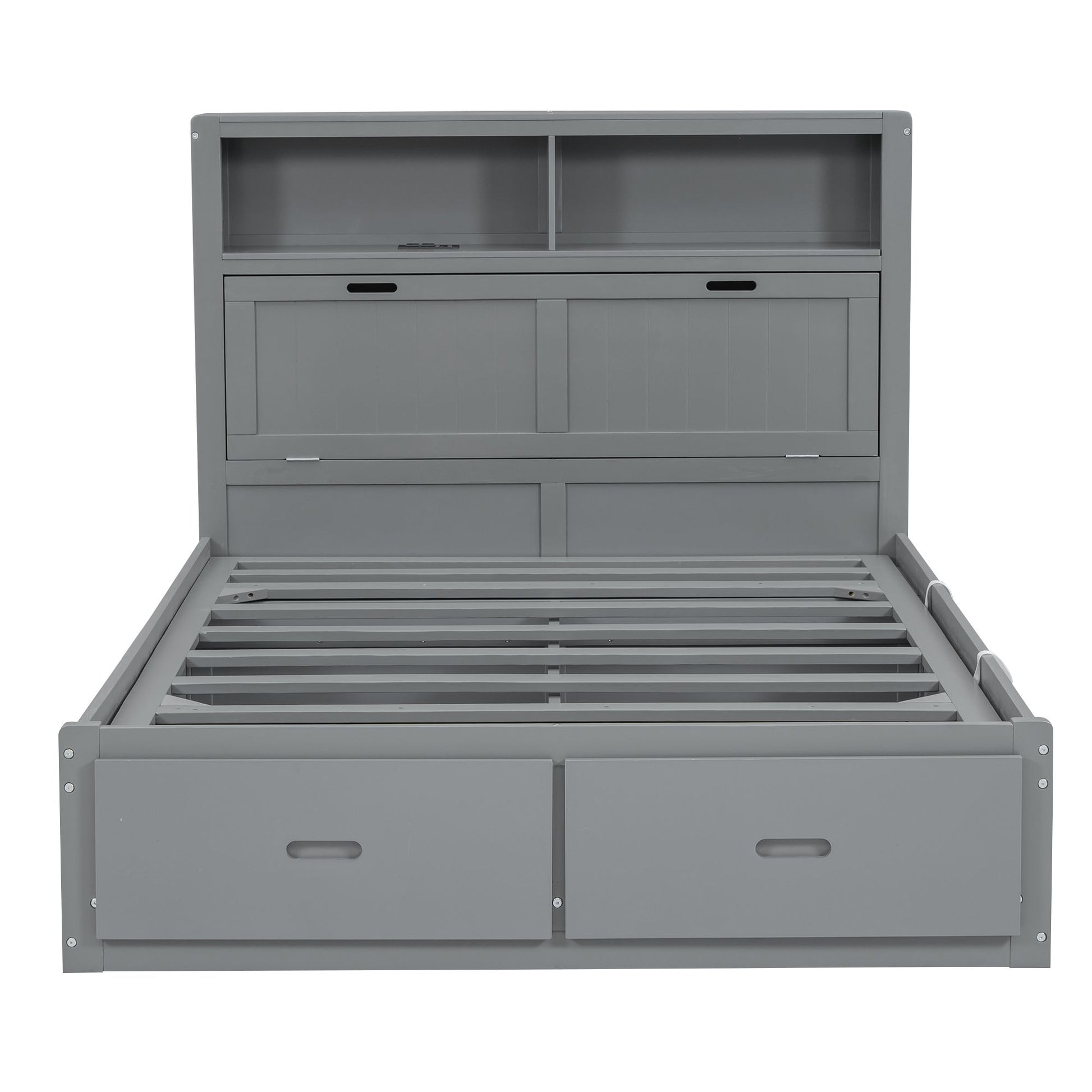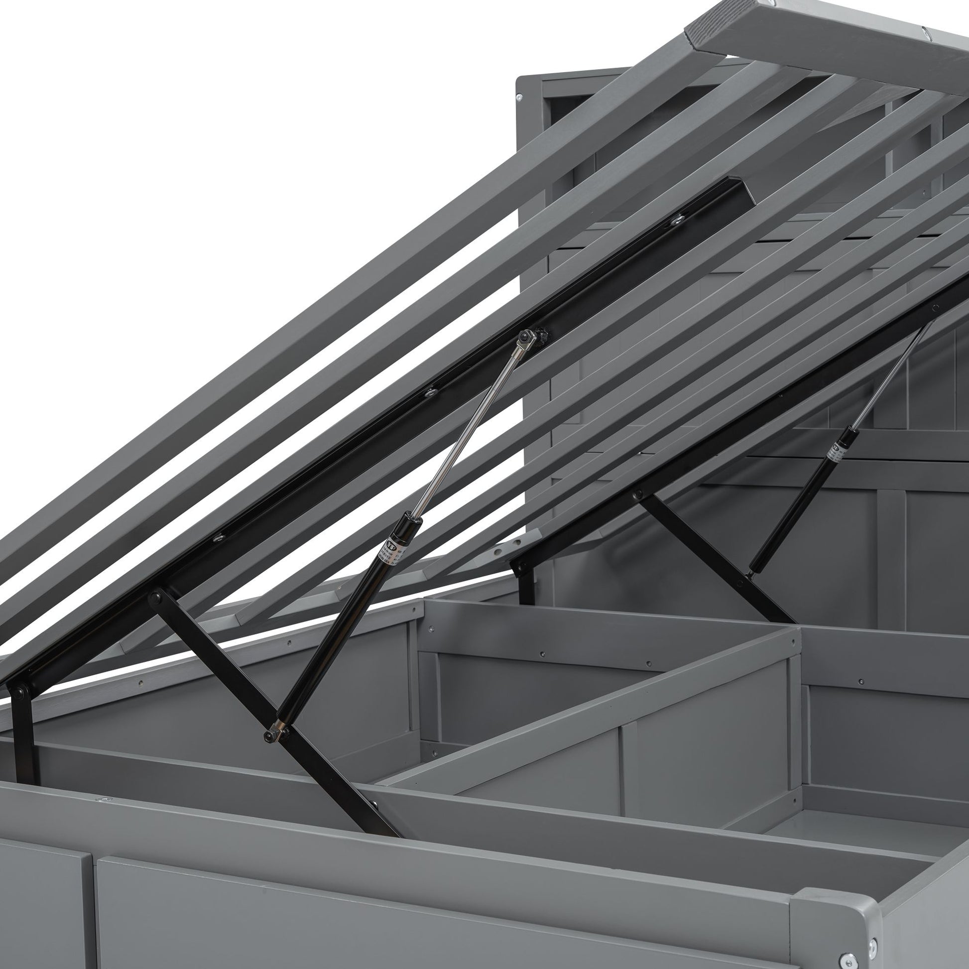 Full Platform Bed with Hydraulic Lift Storage, LED Headboard and Charging Station in Gray