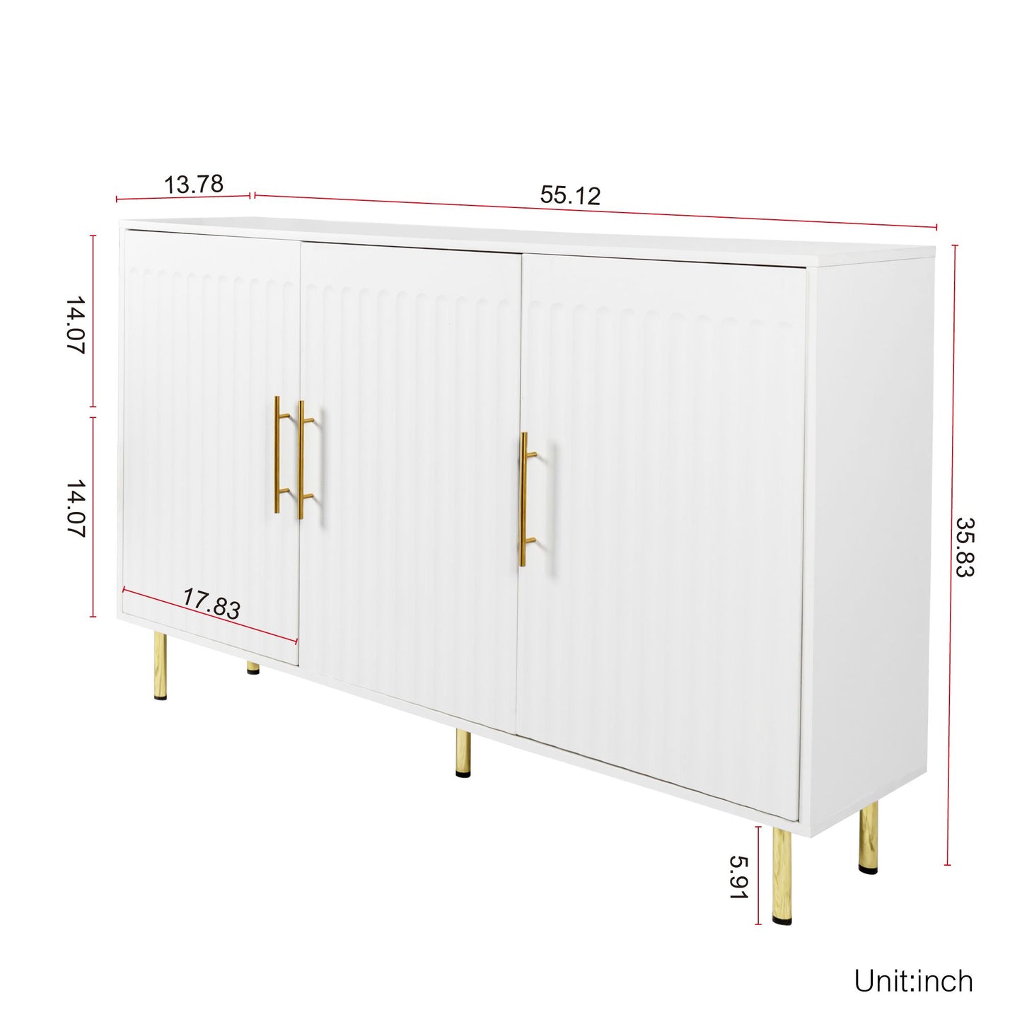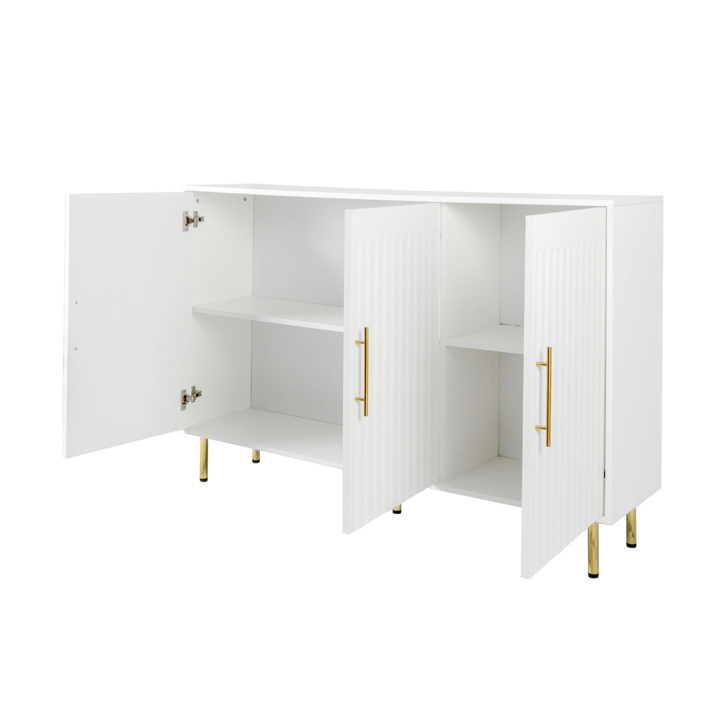 Rowdale Fluted 3-Door Sideboard with Gold Handles 55.12"W (White)