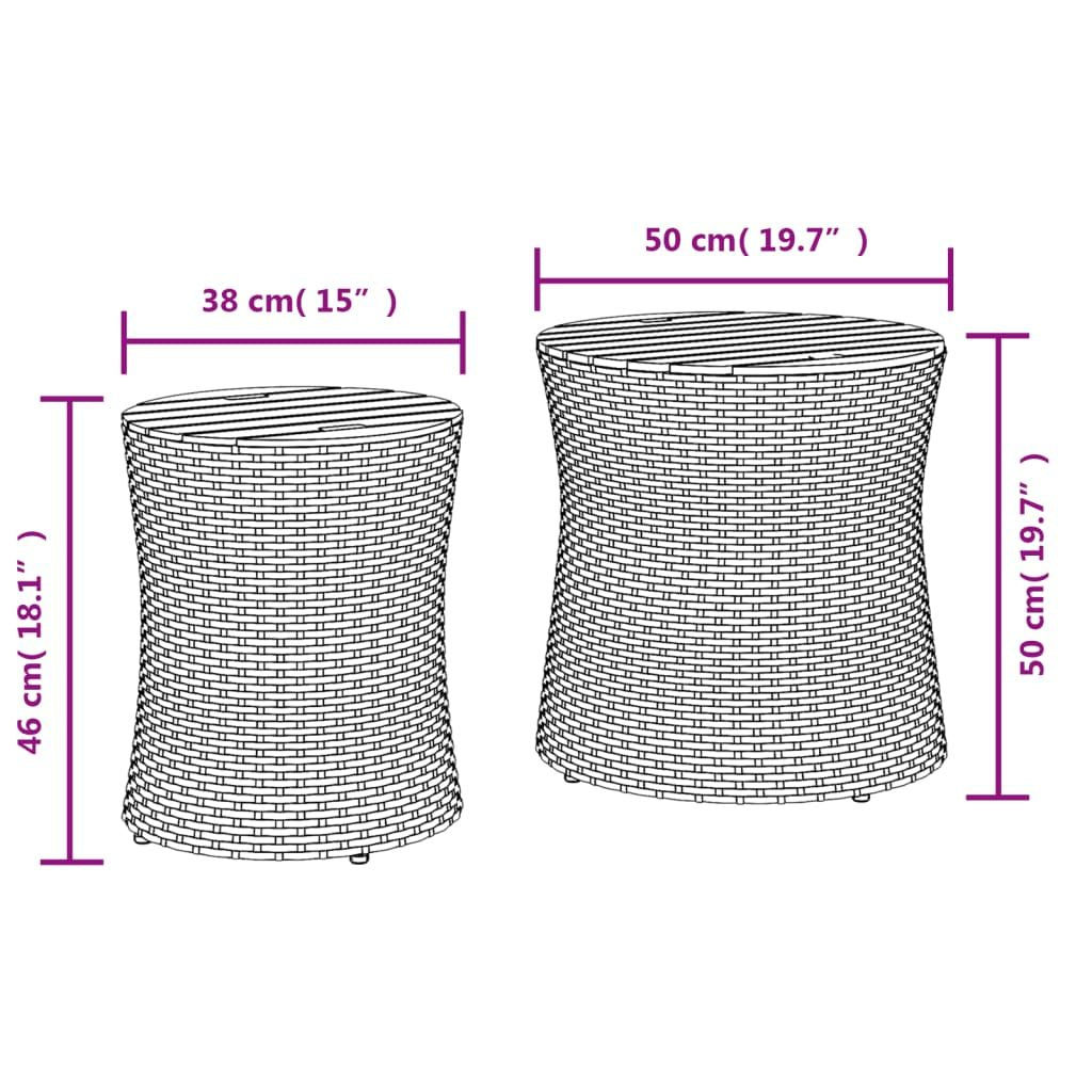 2 Pc. Patio Side Tables with Wooden Top in Beige Poly Rattan