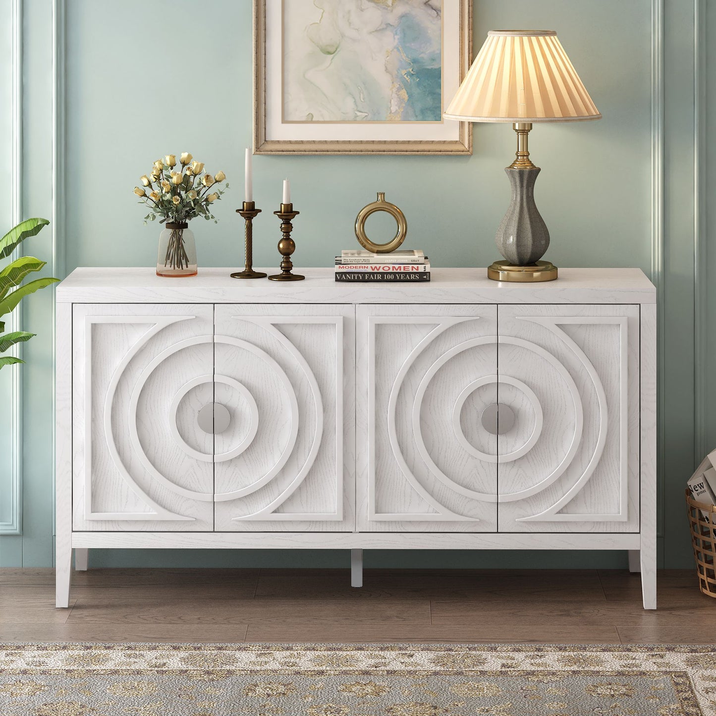 The Myaigi sideboard has four doors with rounded lines on the doors to create a three-dimensional look. You can put it in the kitchen, entryway or living room, the country style cabinet adds a warm atmosphere to your home.