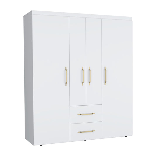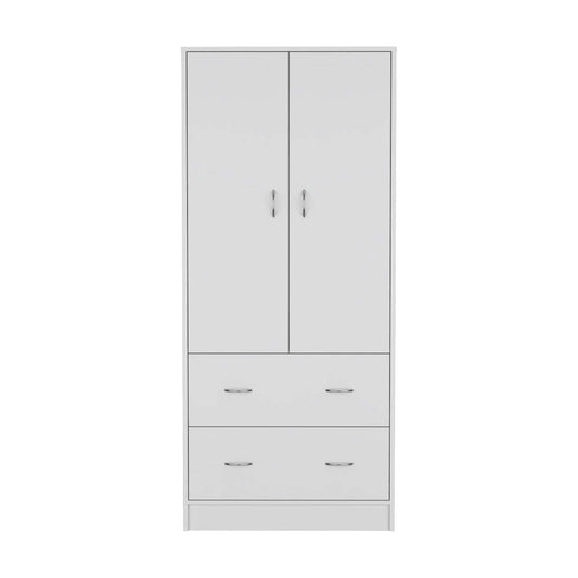 Bariloche Wardrobe with Hanging Rods, Shelves, and 2 Drawers in White