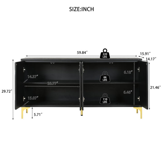 60" Carved Credenza Storage Cabinet with 4 Doors in Black