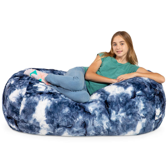 Jaxx Sofa Saxx Bean Bag Couch - 4 Foot - Faux Fur, Blue & White Print