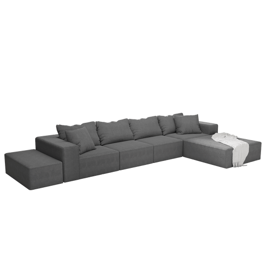 131'' Modular Sectional with Chaise in Gray Corduroy