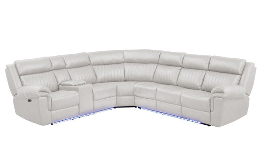 Revington Power Reclining Sectional with Built in USB-C Ports & Bluetooth in Ice