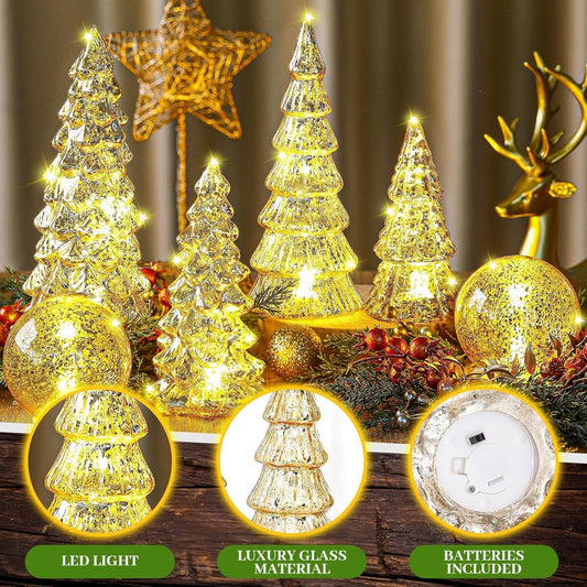 6 Pc Lighted Mercury Cracked Glass Figurines Set