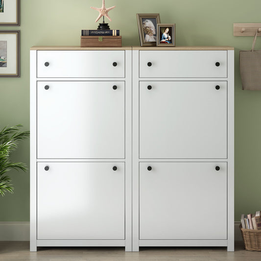 Fayetteville Flip Down Shoe Cabinet with 2 Drawers in White