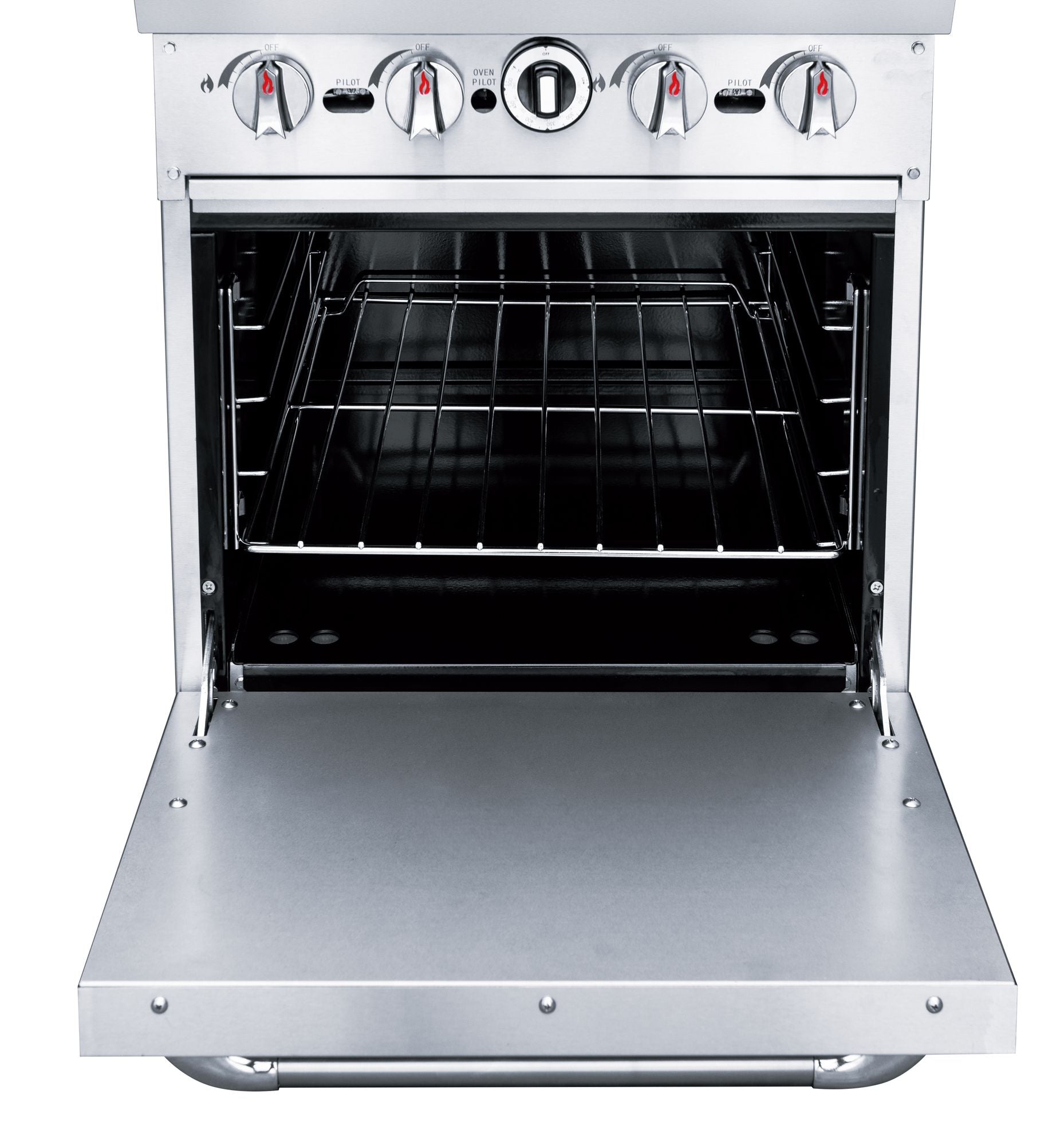 Crafted from stainless steel, the Dukers Commercial Series Gas Range isengineered to withstand the rigors of heavy-duty use in commercial kitchens.Available with two, four, or six burners, and in sizes ranging from 24inches to 60 inches, these ranges offer versatility to suit various kitchensetups. Our dual Gas Ranges and Ranges with Griddle ensure precise temperaturecontrol with superior flame spread and reduced cold spots. Themodern design seamlessly blends with impressive performance, deliveringthe ultimate luxury kitchen experience