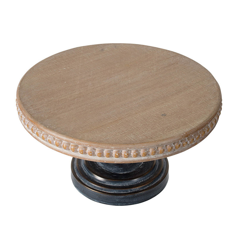 Inspired by the traditional cake stand silhouette, this display stand boasts a round top that is accented with a beaded trim for an extra layer of intrigue. Fit for any tabletop, the contrasting black and brown tones make this stand an amazing option for highlighting your favorite decorative pieces.