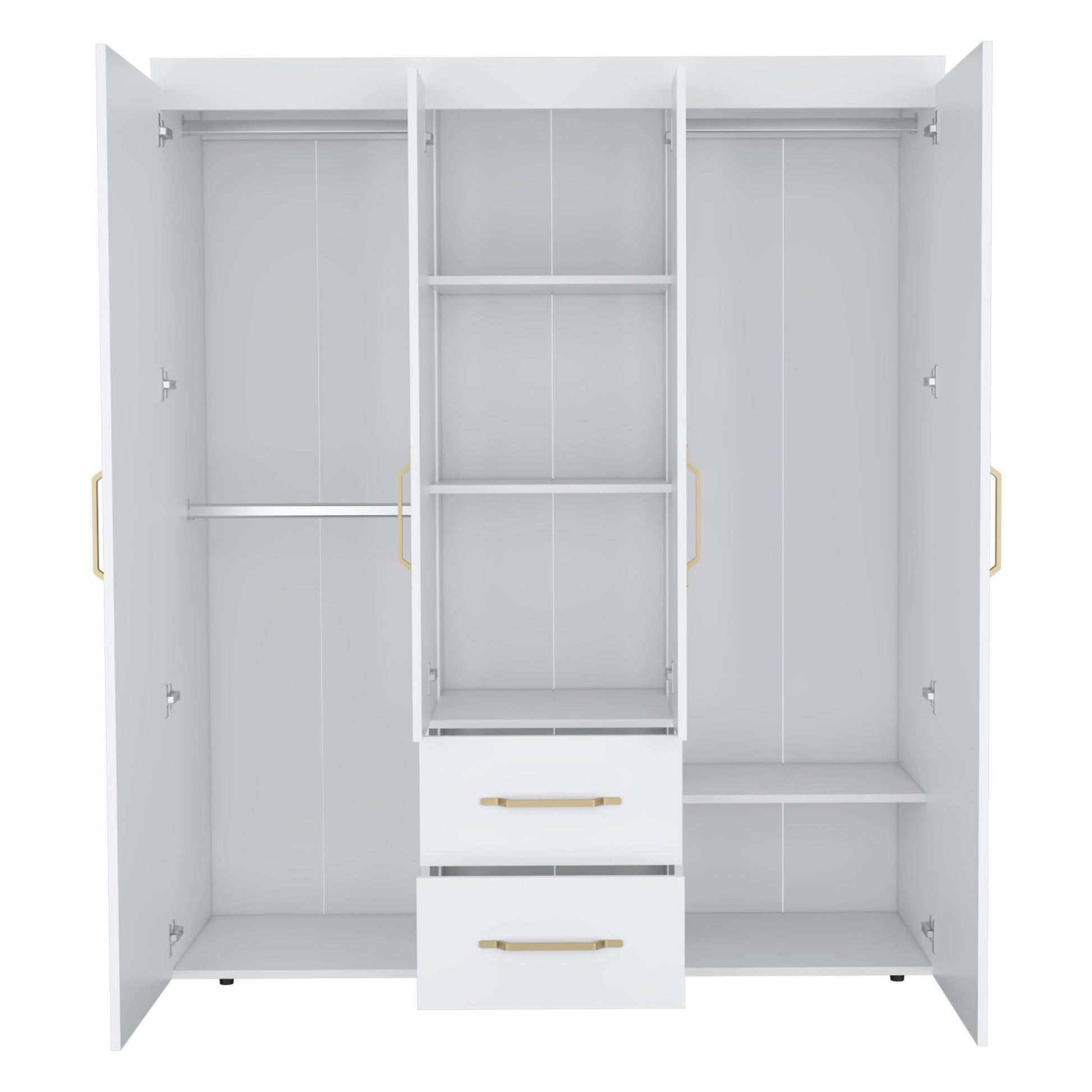 Bariloche Wardrobe with Hanging Rods, Shelves, and 2 Drawers in White