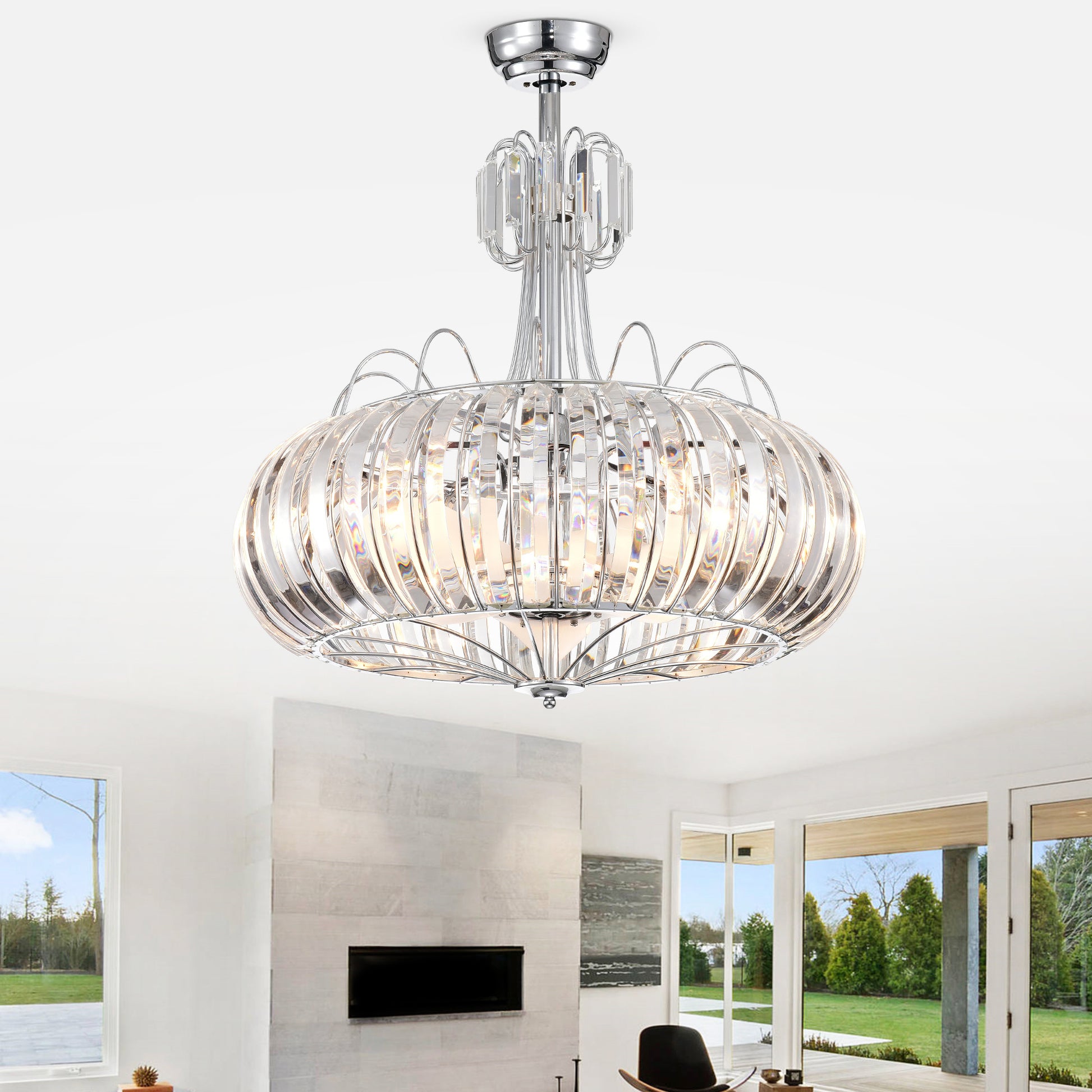 Bellamy Chrome 28-inch 6-light Lighted Ceiling Fan Fandelier with Crystal Shade