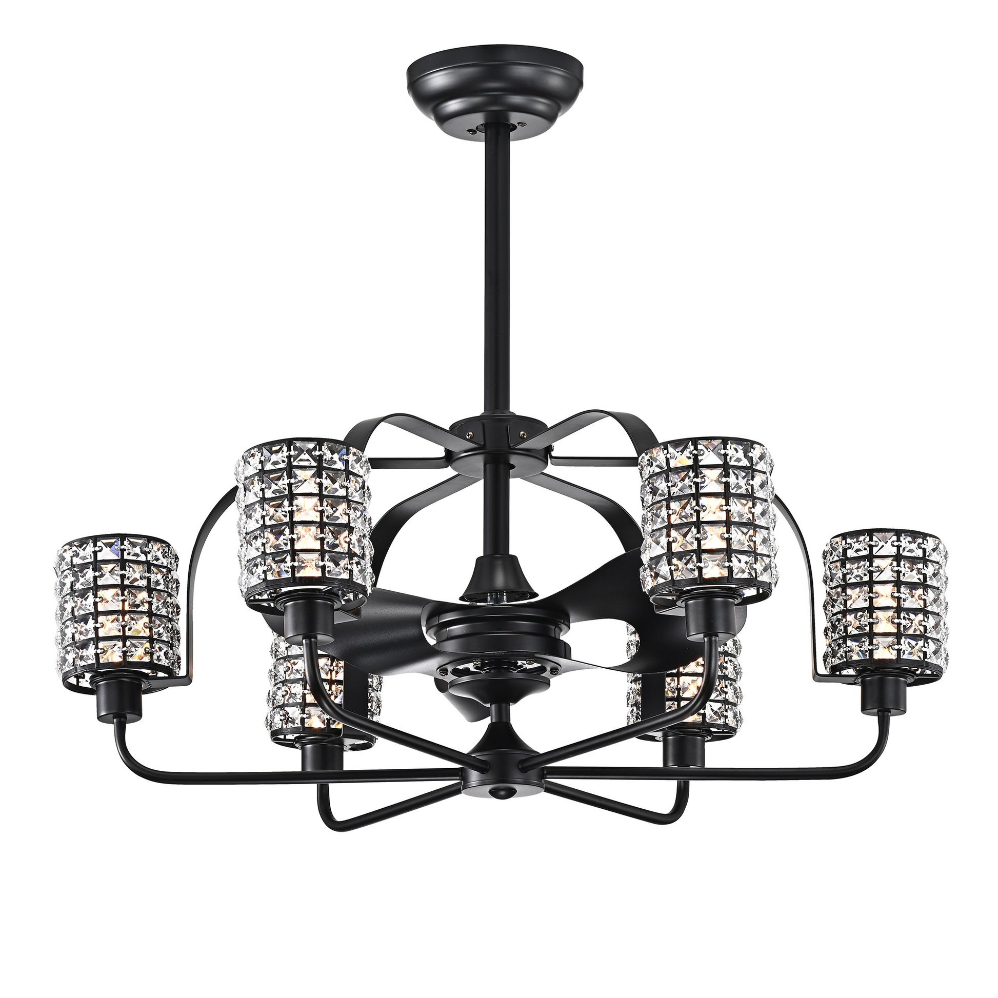 Erween Matte Black 35-inch 3-Blade Fandelier w/ Cylinder Crystal Shade (Includes Remote)