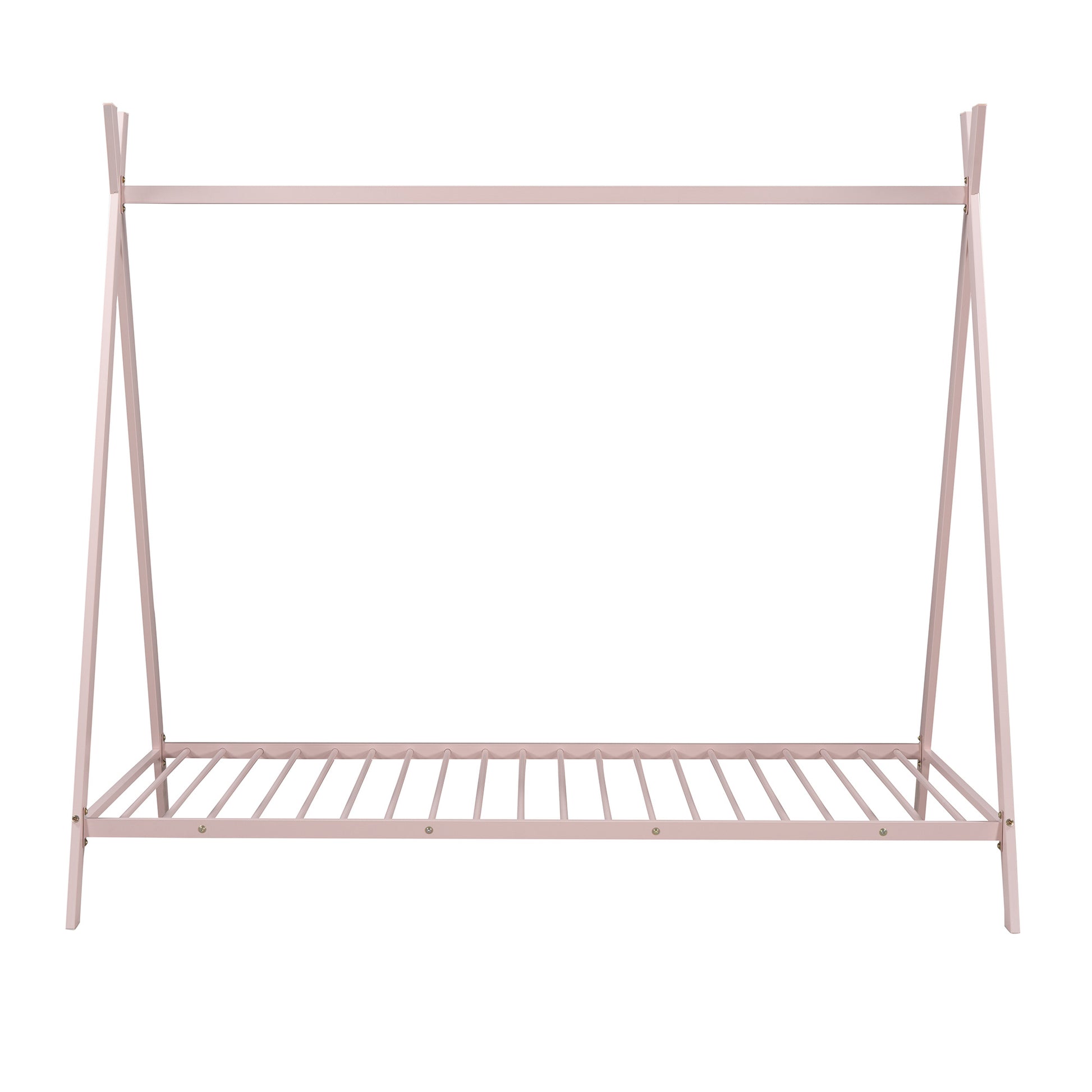 House Bed Tent Bed Frame Twin Size Metal Floor Play House Bed with Slat for Kids Girls Boys , No Box Spring Needed Pink