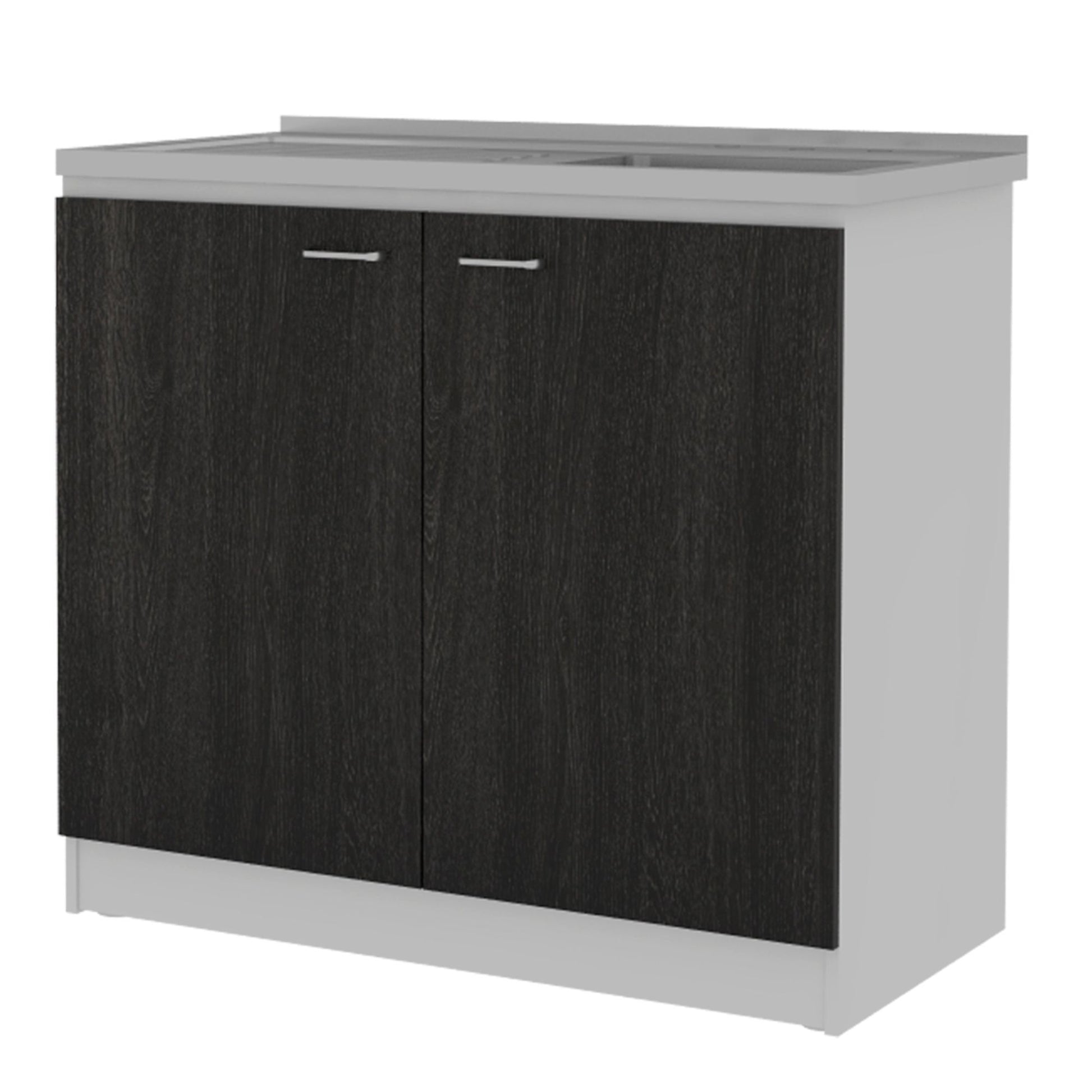 Luther 2 Piece Kitchen Set, Olimpo 150 Wall Cabinet + Salento Utility Sink With Cabinet, Black / White