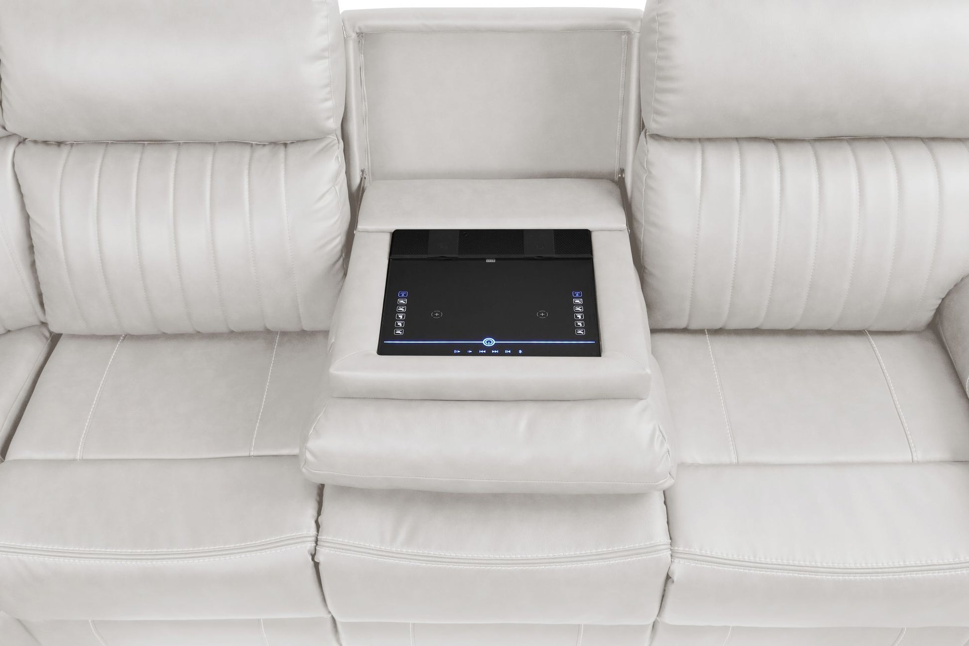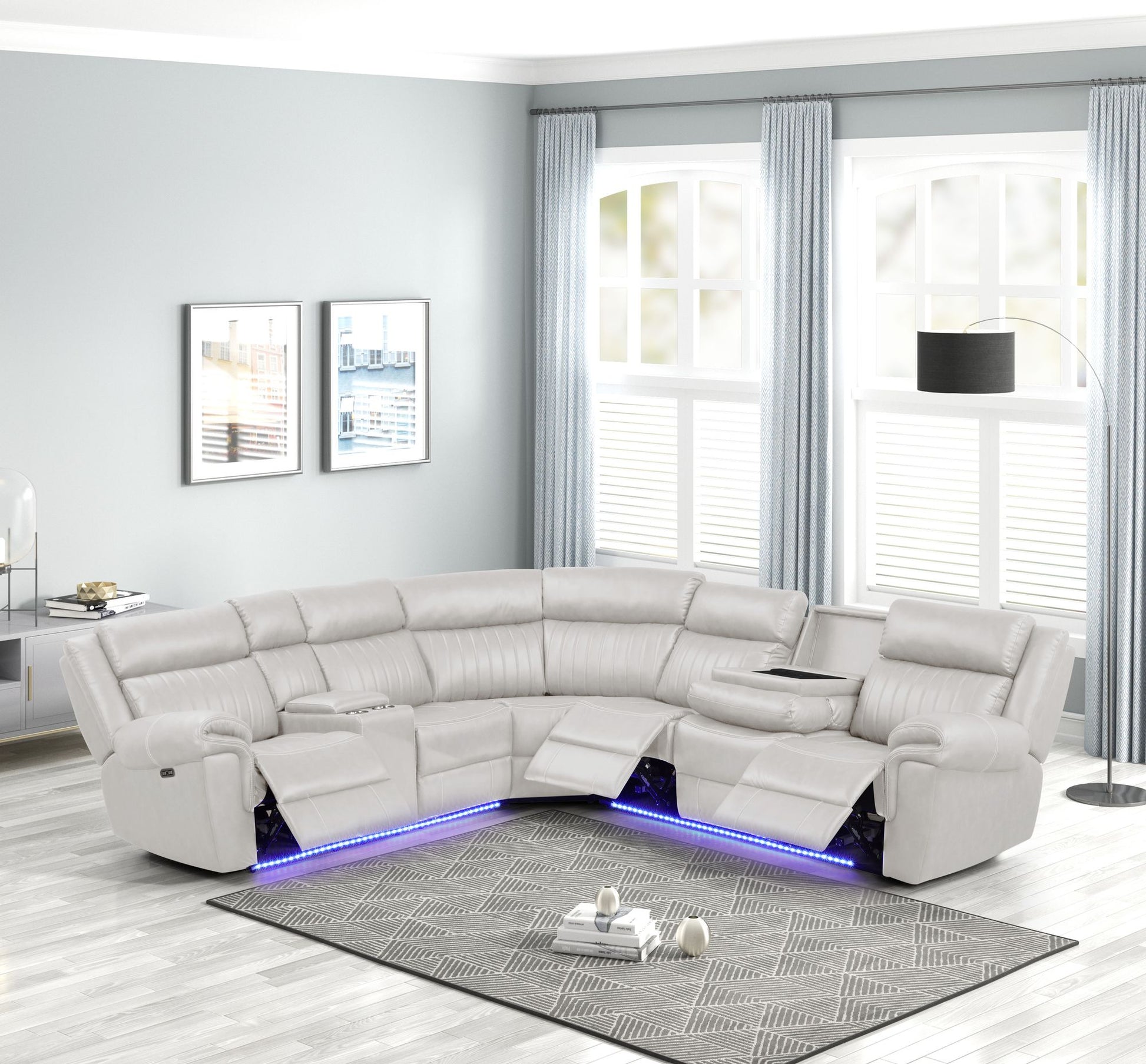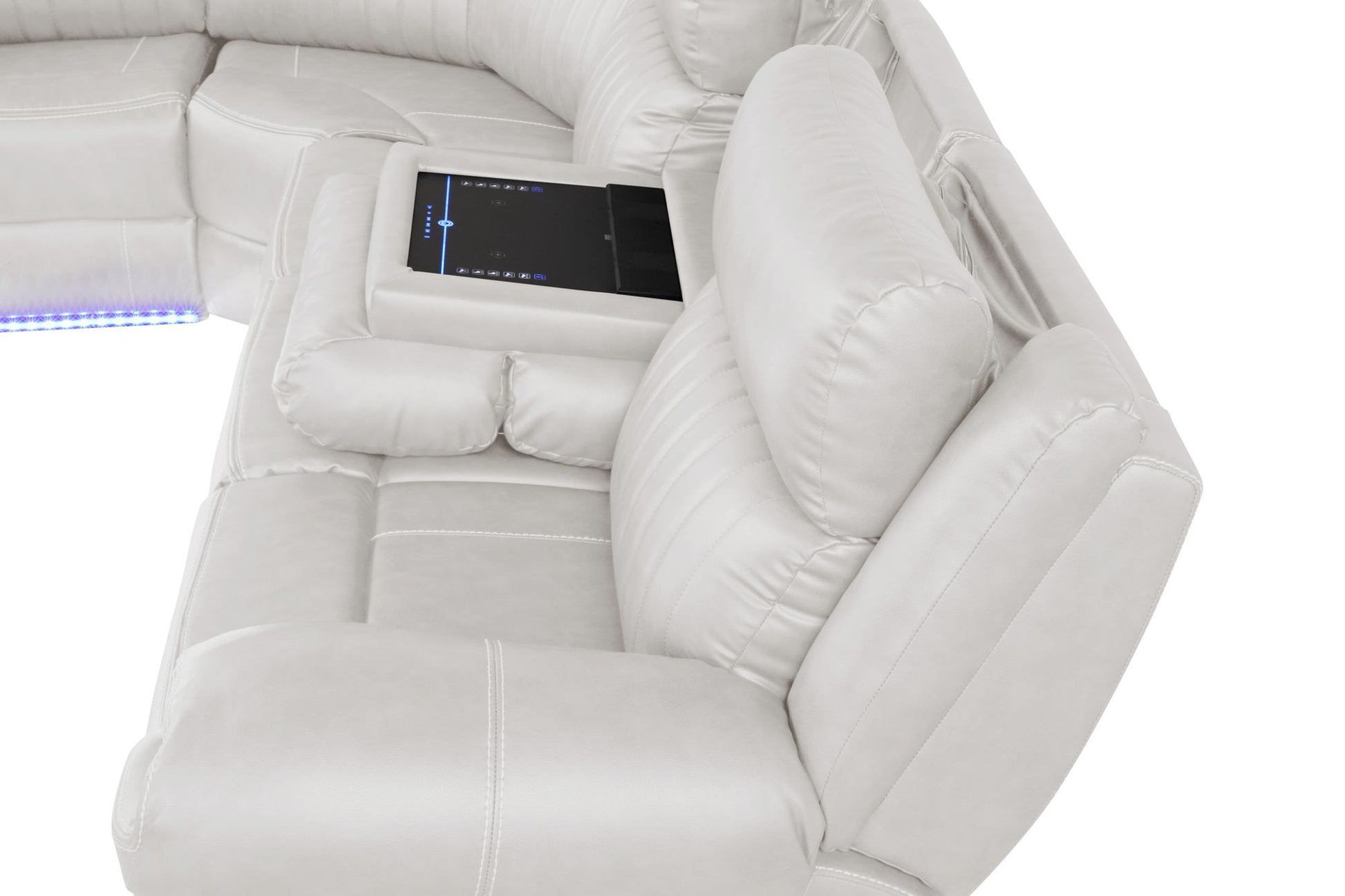The sectional sofa redefines comfort with its advanced technological features. It boasts integrated Bluetooth speakers for an immersive audio experience, a convenient touchpad control for seamless operation, and wireless charging capabilities to effortlessly power your devices. Additionally, this sofa is outfitted with ambient LED lights for mood enhancement and USB ports for added connectivity.